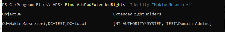 AdmPwdExtendedRights -Identity "MakineNesneleri" | fl