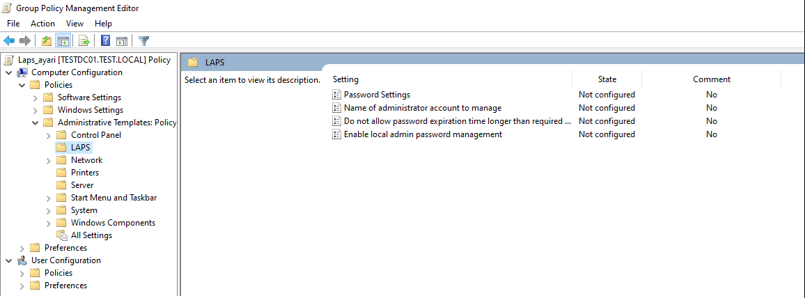 Artık Microsoft LAPS için her şey hazır. Geriye sadece LAPS ayarlarıyla yeni bir GPO kurmak kalıyor.