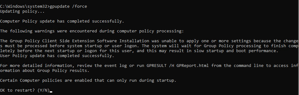 GPO'nun hızlıca etkinleştirilmesi için makinelerde aşağıdaki komut girilir ve makine restart edilir.