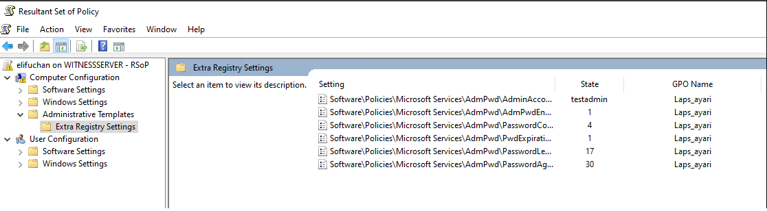 Bu, Microsoft LAPS'in yapılandırma sürecini tamamlar. Bu politika uç noktalara uygulandıktan sonra test etmeye başlayabiliriz.