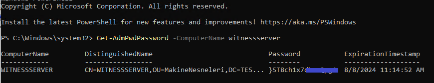Get-AdmPwdPassword -ComputerName <Sunucu adı>