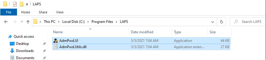 İndirilen Laps.msi dosyası da "C:Program FilesLAPS" dizinine gönderilir.