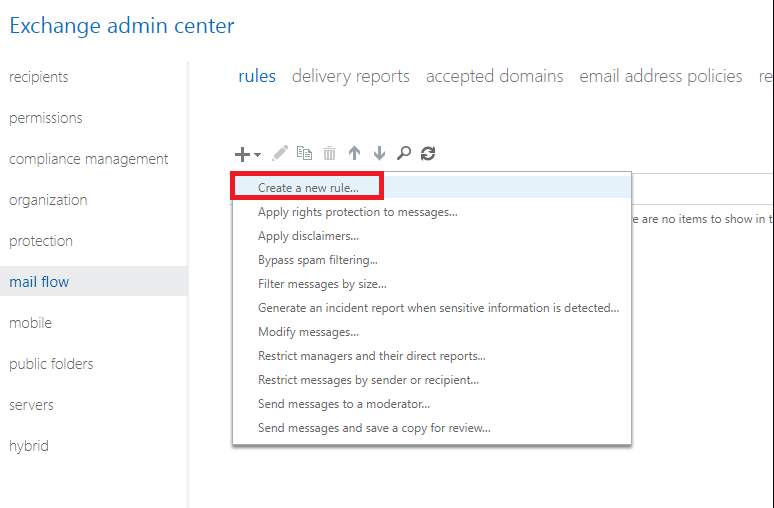 Exchange admin center a "organization management" rolü olan bir kullanıcı hesabı ile giriş yapılır.
